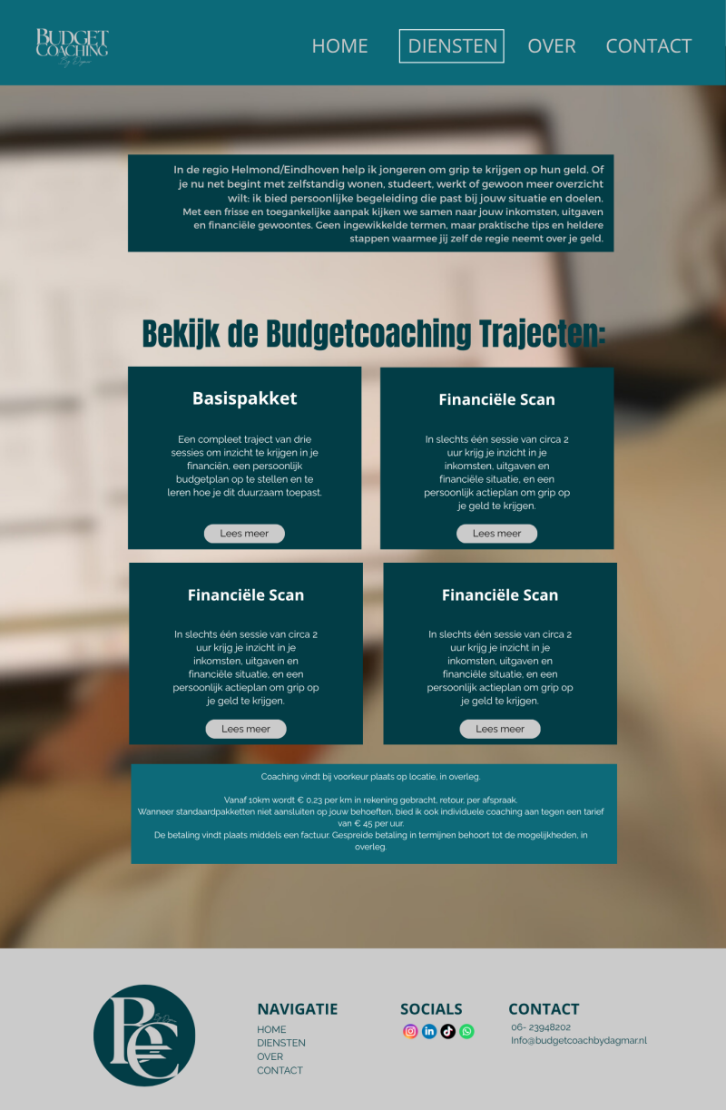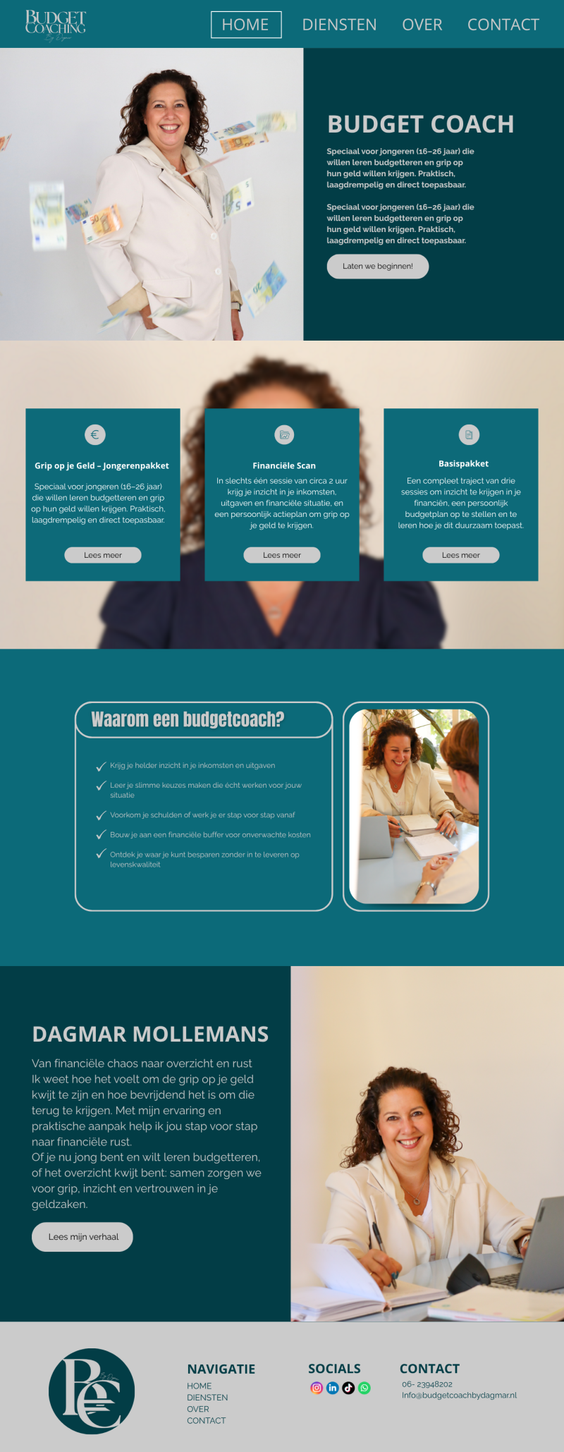 Resultaat: Een frisse, professionele uitstraling die het verhaal van Budget Coaching By Dagmar perfect weerspiegelt en de doelgroep effectief aanspreekt.